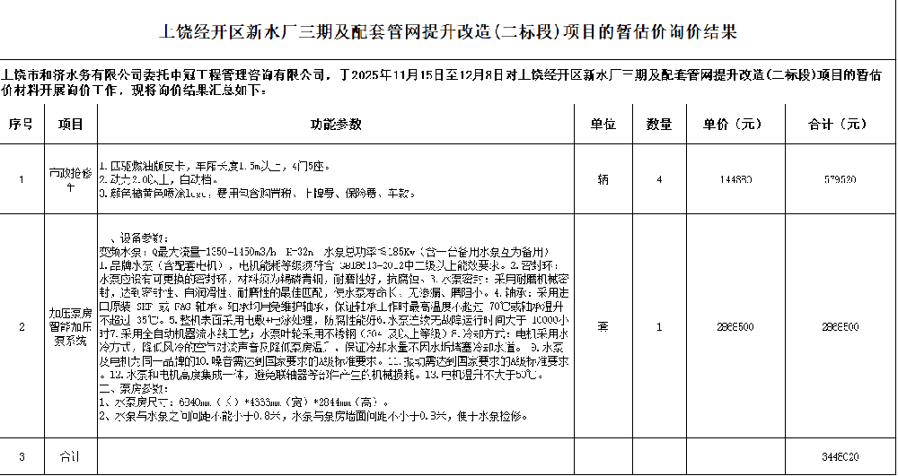 上饒國屬工程造價咨詢有限公司受上饒市和濟水務(wù)有限公司的委托,根據(jù)上饒市和濟水務(wù)有限公司的招標計劃,遵循公平、公正、公開、誠信原則,對上饒市和濟水務(wù)有限公司的哈夫節(jié)采購項目進行公開詢價,誠邀相關(guān)供應(yīng)商對采購單位所需服務(wù)進行報價。一、招標需求1.項目名稱:哈夫節(jié)采購項目2.項目要求:詳見附件二、報價要求1、供... [更多]