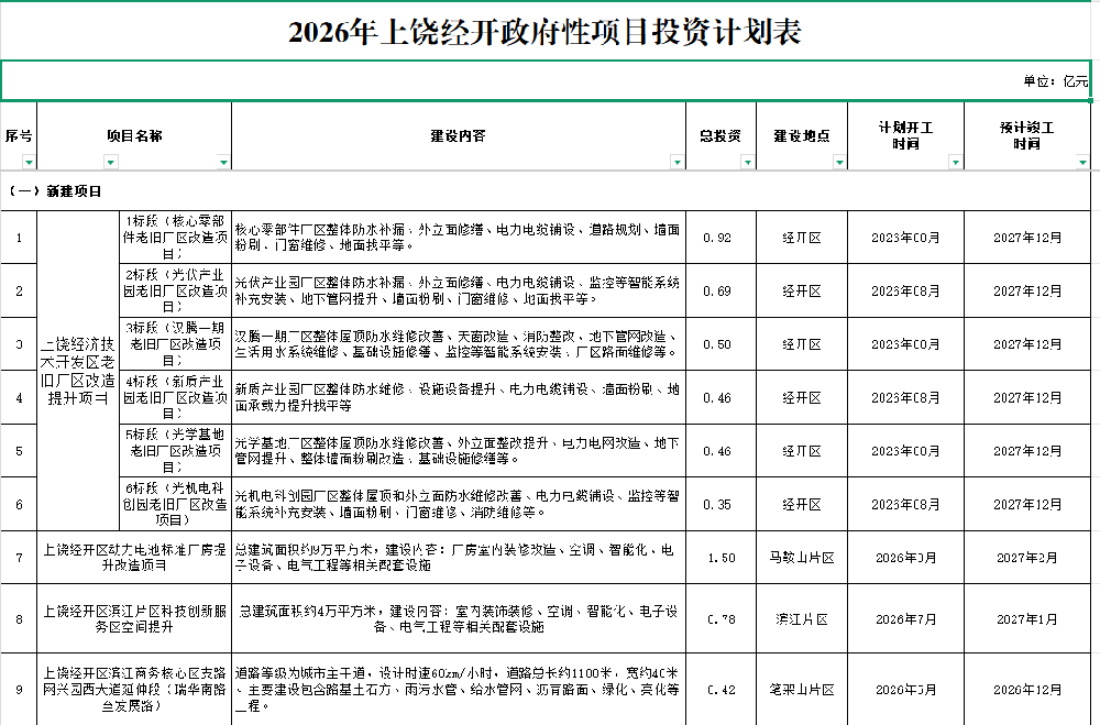 2026年上饒經(jīng)開(kāi)政府性項(xiàng)目投資計(jì)劃表